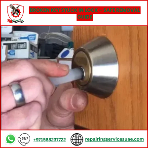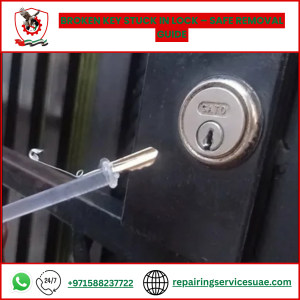 In conclusion, dealing with a broken key stuck in a lock does not have to be a disaster that ruins your day or your door. Trying to fix it yourself can lead to more damage and higher costs, but with Repairing Services UAE, you have a trusted partner ready to help. Our specialized “Broken Key Stuck in Lock – Safe Removal Guide Services” are designed to remove the broken key safely and efficiently, preserving the life of your lock. With our wide range of services, expert team, and commitment to customer satisfaction, we are the best choice for anyone in Dubai facing a lock or key emergency. Do not let a broken key leave you stranded or compromise your security. Reach out to us for professional help that is fast, affordable, and effective. We are here to ensure that your locks work smoothly and your home stays safe. Contact Repairing Services UAE now by calling +971588237722, emailing us at repairingservicesuae@gmail.com, or visiting our website at www.repairingservicesuae.com to book an appointment or request a free, no-obligation quote.