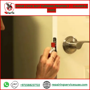 In conclusion, having a door lock that does not turn is a serious issue that needs a professional solution to ensure the safety of your family and your belongings. Trying to fix a lock yourself can often lead to more damage and higher costs, so it is always better to call experts like Repairing Services UAE. We have the right tools, the right knowledge, and the right attitude to solve your problem quickly and affordably. Whether it is a simple repair, a full replacement, or any other maintenance service in your home, we are here to help you with a smile. Don’t let a stuck lock ruin your day or put your home at risk. Trust the experts who have been serving the Dubai community with dedication and skill. Contact Repairing Services UAE now by calling +971588237722, emailing us at repairingservicesuae@gmail.com, or visiting our website at www.repairingservicesuae.com to book an appointment or request a free, no-obligation quote.
